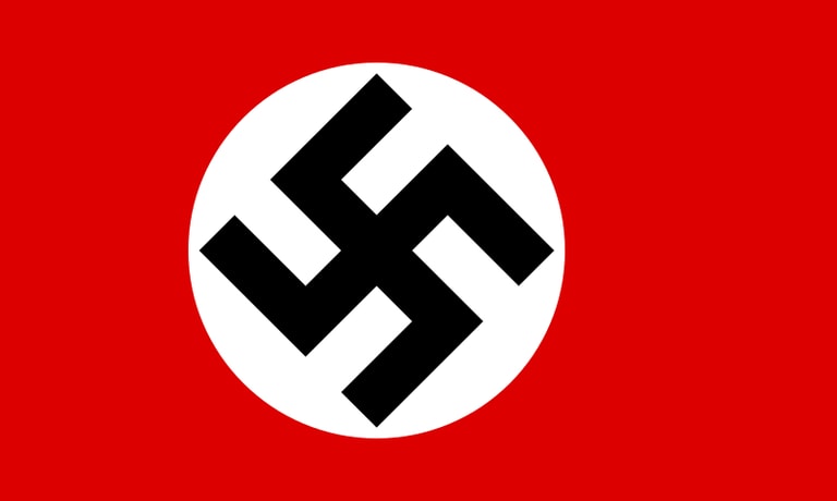 至於納粹德國與卍字符之間的關係,則是始於希特勒(Adolf Hitler)左思右想後的成果。他曾在《我的奮鬥》(Mein Kampf)一書中表示,在經過無數嘗試後,他終於找出最滿意的紅旗白底黑「卐」的比例及設計,最終納粹黨才在 1920年正式採用。