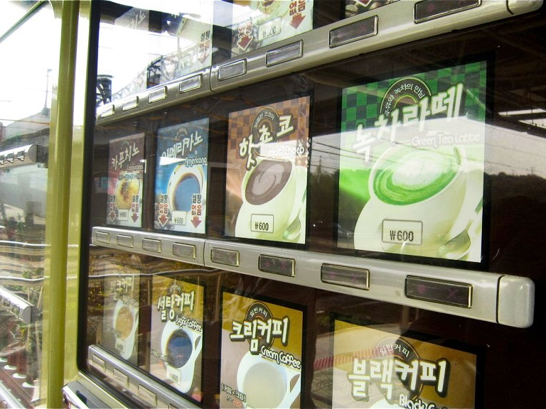 自動販賣機提供的三合一咖啡,一杯大概只要100、200韓元(約新台幣3到5元),一般民眾喝起來沒什麼負擔,三合一即溶咖啡包也是公司必須備品,同事間在午休時間用餐後,三五成群在茶水間裡喝咖啡、聊是非,也是現在常見風景。