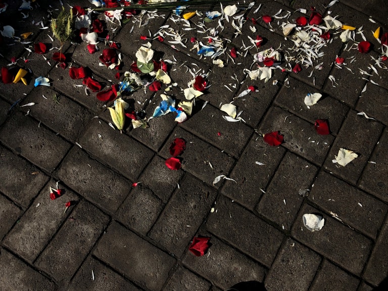 在智利首都聖地牙哥(Santiago)附近的一座墓園中,92歲的約瑟(Jose)的親友撒下一地花瓣,哀悼他們因罹患COVID-19(武漢肺炎)而離世的摯友或親人。