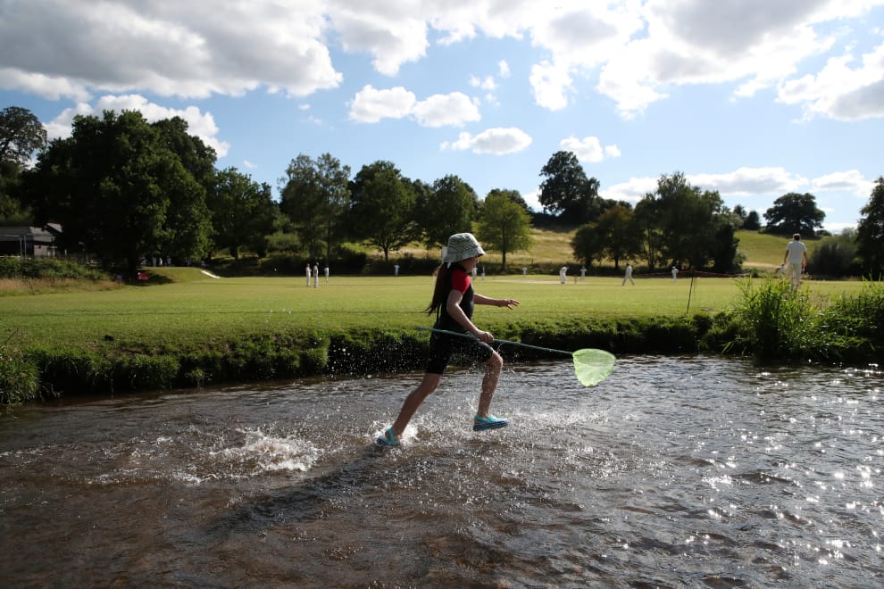 在英國南部的小鎮漢馬爾(Abinger Hammer),一名小女孩拿著捕蟲網,在一條小溪中快速奔跑著。在溪岸旁的草地上,大人們正在玩板球。