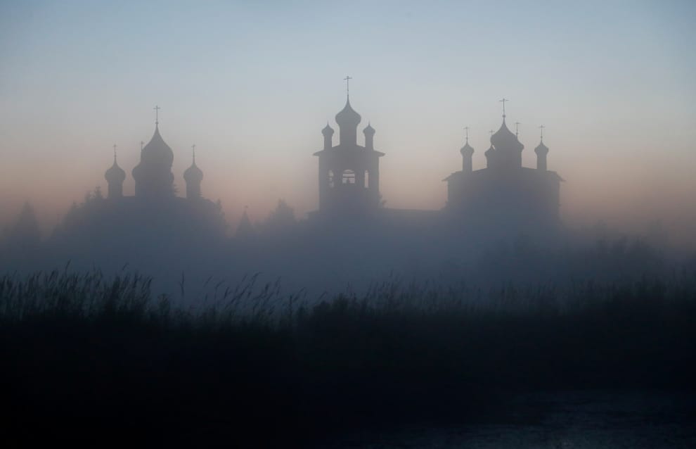 在俄國西部諾夫哥羅德州(Novgorod Region)的小鎮維亞日斯基(Vyazhishchi),濃霧遮住了尼科洛維耶斯基斯基女子修道院(Nikolo-Vyazhischsky Women's Monastery)。