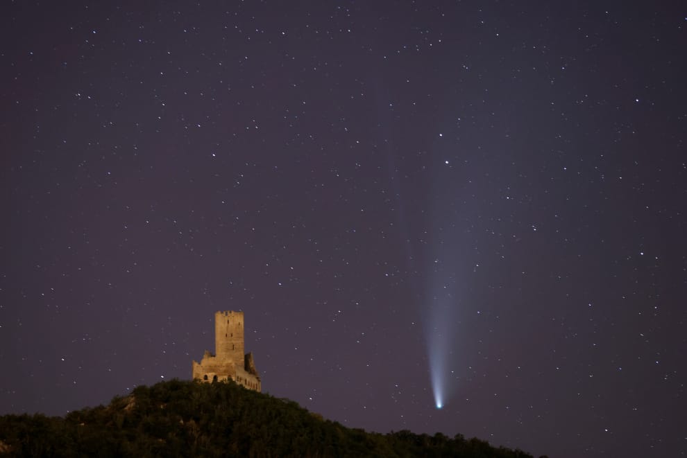 在法國東北部萊茵省的謝爾萊維爾鎮(Scherwiller)的奧騰堡(Ortenbourg castle),Neowise彗星飛過奧騰堡上空。