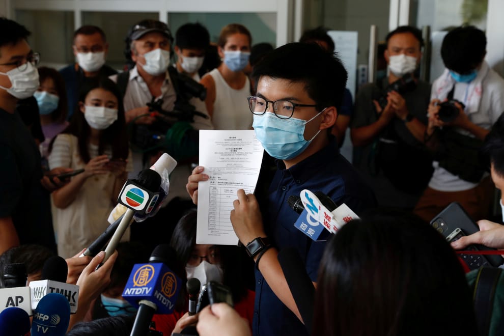 在香港,民主派人士黃之鋒宣布註冊成為接下來香港立法會選舉的候選人。