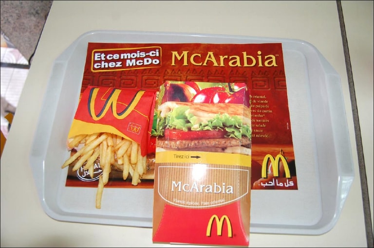 附帶一提,在阿拉伯大多麥當勞其實看不到McFalafel這道餐點,反而是皮塔餅三明治(McArabia)比較常見,這是麥當勞在 2003年受到美國入侵伊拉克引發的反美情緒影響特別推出的產品,當時麥當勞主打這道菜「使用阿拉伯在地食材、遵循阿拉伯口味」,希望可以吸引當地的消費者,現在也已經是不少國家的常駐餐點了。