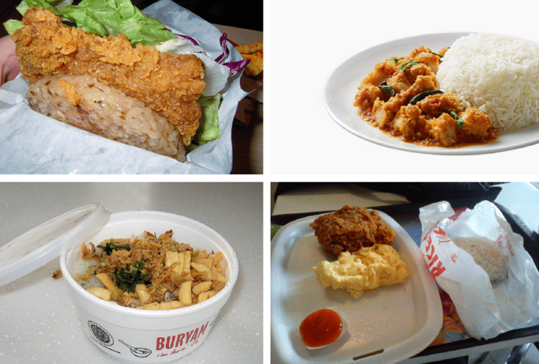 在以白米飯為主食的東亞、東南亞地區,自然不難看到麥當勞以米飯延伸出各式各樣的餐點,除了我們熟悉的米漢堡以外,在印尼、菲律賓等地方的麥當勞可以看到搭配特色配料的炸雞配白飯(PaNas 2 with Rice、Chicken McDo with Rice),馬來西亞則有灑上油蔥、薑末、青蔥、綠辣椒的雞肉粥(Bubur Ayam McD),在泰國甚至可以看到麥當勞版本的打拋飯(McKAO Kaprao Rice)——想要另外加蛋的話只要加 10泰銖(折台幣約 9元)即可,而且絕對沒有蕃茄!
