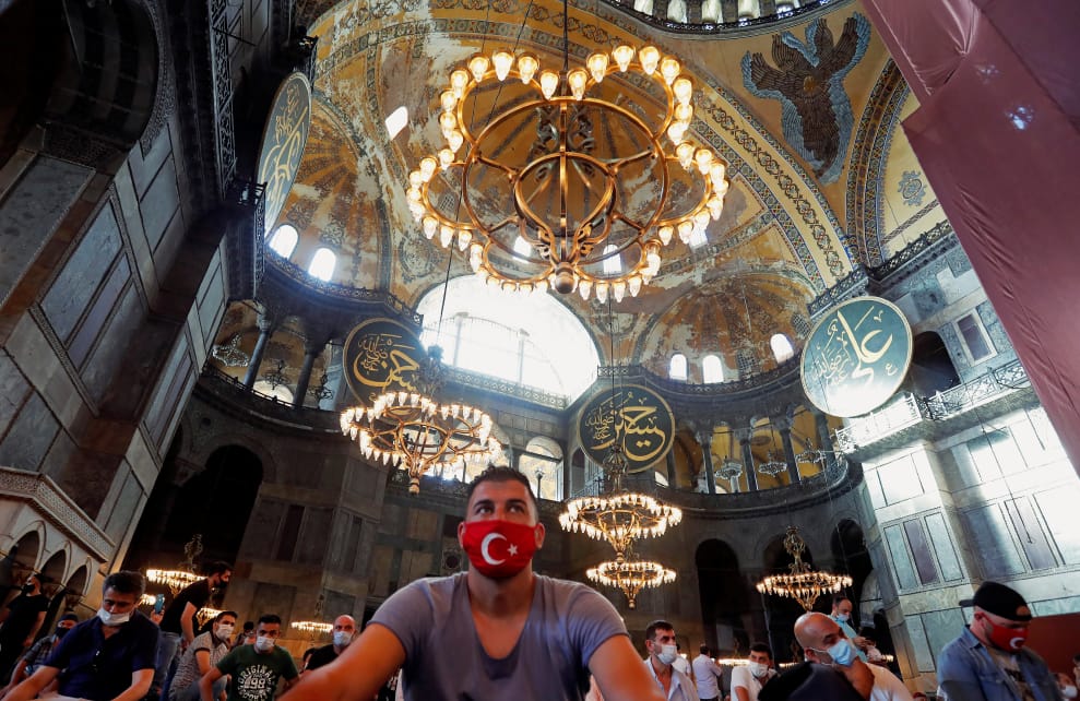 26號這天,穆斯林們來到位於伊斯坦堡的聖索菲亞清真寺(Hagia Sophia Grand Mosque)參加祈禱活動。