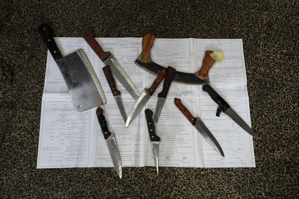 在加薩市的一間工作坊內,地上擺滿了準備磨利的刀子。再過不久,穆斯林們就會開始屠宰牲畜迎接宰牲節(Eid al-Adha)的到來。