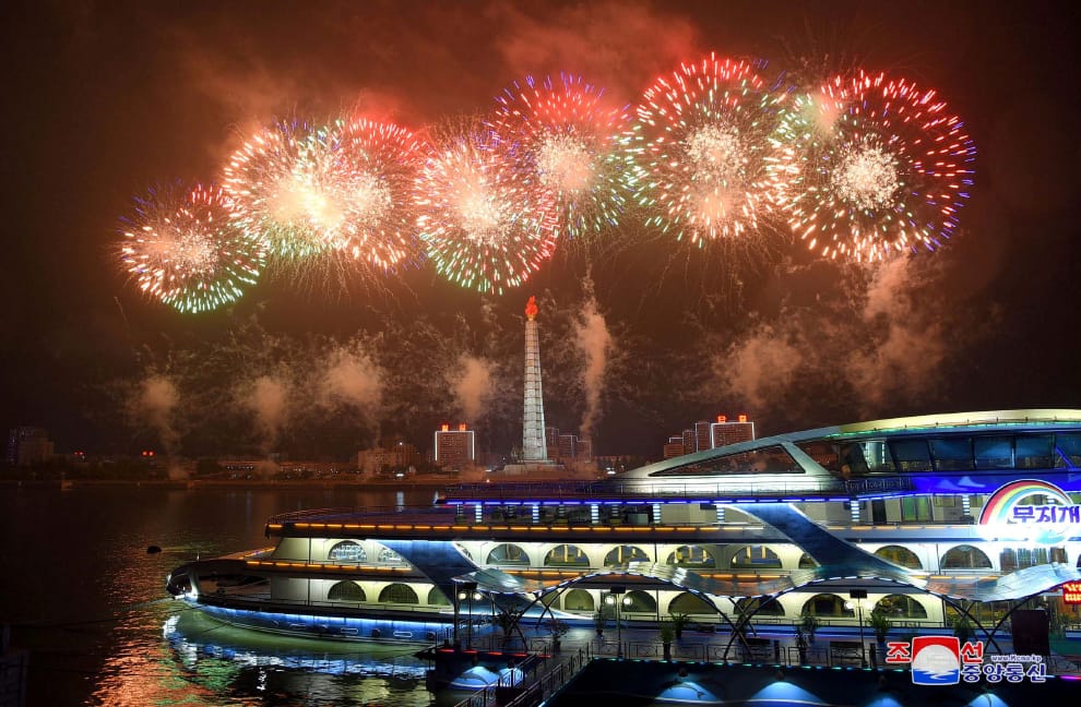 在首都平壤,夜空中美麗的煙火紀念韓戰停戰滿 67周年。