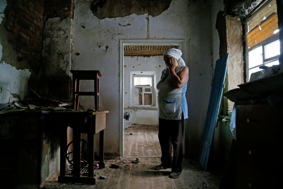 在衝突頻仍的頓內次克地區(Donetsk region),今年 77歲的伊茲維柯娃(Katerina Izvekova)看著殘破不堪的房子興嘆,這間房子在親俄武裝分子與烏克蘭政府軍對峙時遭到破壞。