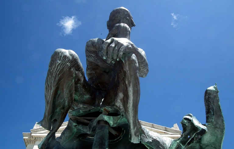 說到思想,或許很多人第一個躍入腦海中的就是這個全身赤裸、支著下巴在思考的男人,它就是法國著名雕塑家羅丹(Auguste Rodin,1840-1917)的得意之作──「沉思者」(Le Penseur)。