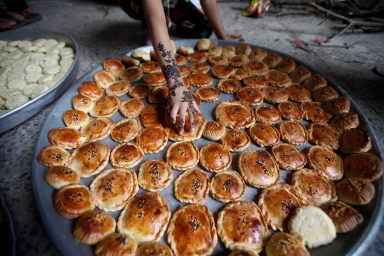在首都沙那,一名女孩正在準備迎接宰牲節(Eid al-Adha)的傳統點心。