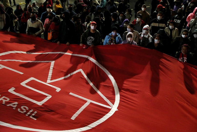 在聖保羅街頭,巴西無家工人運動組織(Homeless Workers' Movement,MTST)的成員正在抗議,他們要求政府出面處理房價,給他們一個負擔得起的棲身之所。