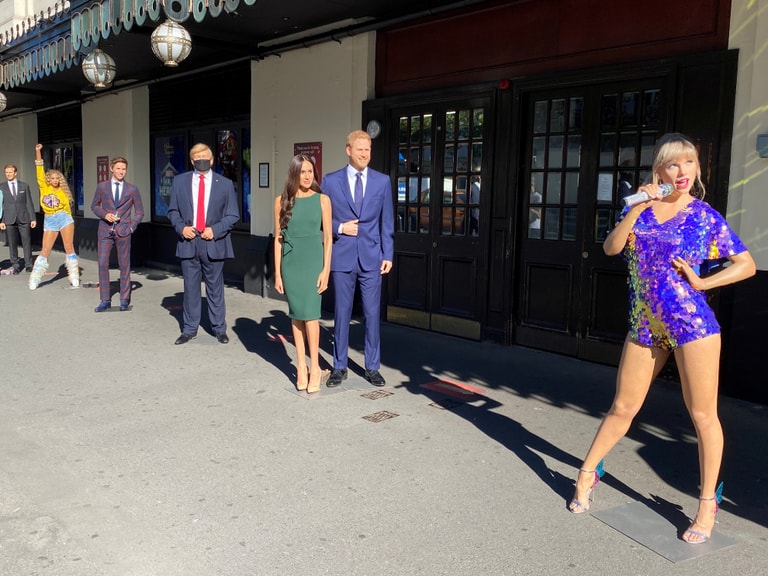 在倫敦杜莎夫人蠟像館(Madame Tussauds London)外,可以看到名人蠟像正在排隊,他們是替蠟像館重新開張招攬生意的好招牌。