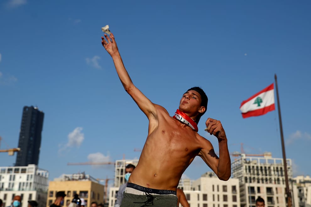 在 4號發生大爆炸的貝魯特,民眾上街抗議當局管理不善,導致港口倉庫存放的 2,750噸硝酸銨爆炸,造成至少 135人死亡、超過 5,000人受傷。