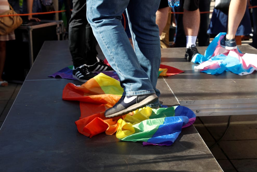 波蘭—遭踐踏在地的彩虹旗