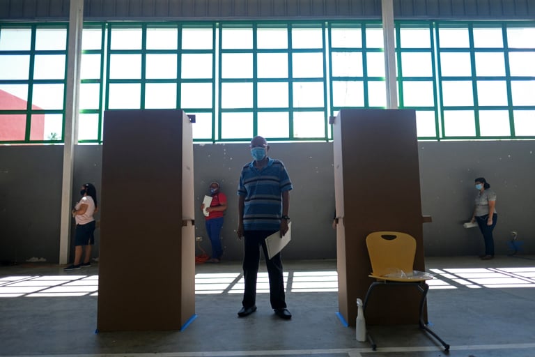 在波多黎各東北部的洛伊薩(Loíza),一名男子準備在總督選舉中投下他的選票。這場總督選舉本應於 8月9日結束,但當時卻發生選票尚未送達投票所的烏龍,導致選民無票可投,民眾必須在一周後,再回來投票所投票。