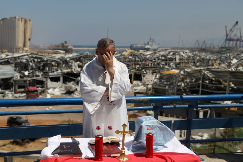 在黎巴嫩首都貝魯特附近,天主教慈善團體國際明愛會黎巴嫩分會會長阿布德(Michel Abboud),準備在大爆炸的案發現場附近主持彌撒。彌撒開始前,他忍不住用手遮住自己的臉。