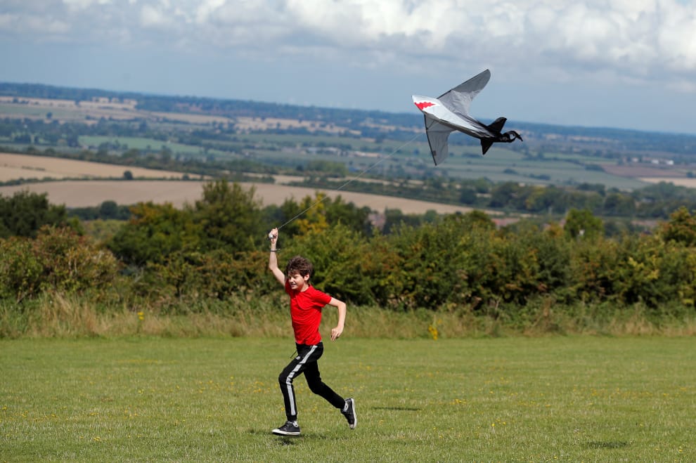 在英國南部的鄧斯特布爾(Dunstable),10歲男孩諾亞(Noah)一手拉著風箏在草地上快速奔跑。