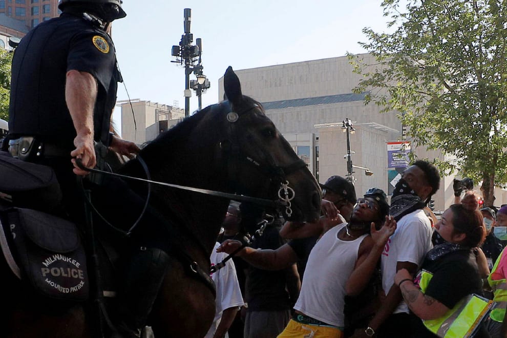 在美國威斯康辛州密爾瓦基市(Milwaukee),抗議美國國內種族不平等問題的群眾,團團圍住了一名反對者,騎警不得不介入現場,將群眾分開。整起事件就恰恰發生在美國民主黨全國黨代表大會(Democratic National Convention,DNC)的舉辦地點附近。