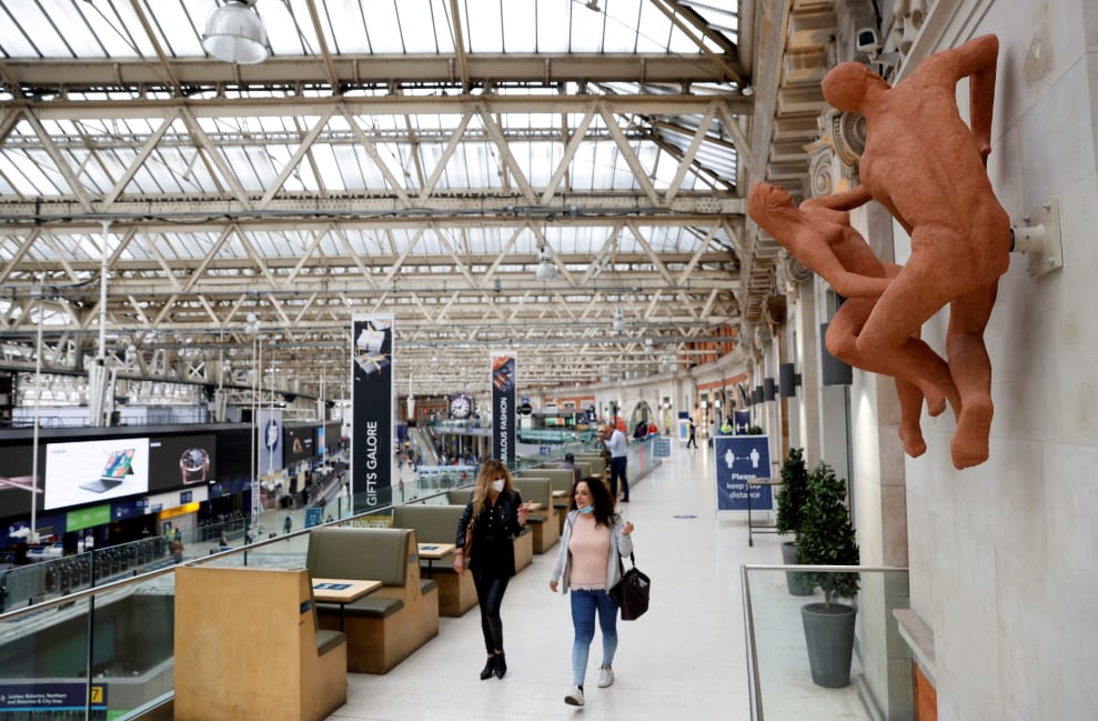 在英國倫敦的滑鐵盧車站(Waterloo train station)中,人們經過知名藝術家佩里(Peter Laszlo Peri)的雕塑《做日光浴的人》(The Sunbathers),1951年英國節(Festival of Britain)舉辦後,這件作品一度失蹤,近期才被尋獲。