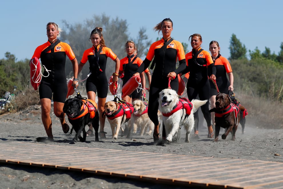 在義大利中部濱海觀光景點里瓦德塔奎尼(Riva dei Tarquini),義大利搜救犬學校(La Scuola Italiana Cani Salvataggio)一支全由女性組成的搜救隊,在沙灘上進行簡單的訓練,準備執行例行巡邏任務。