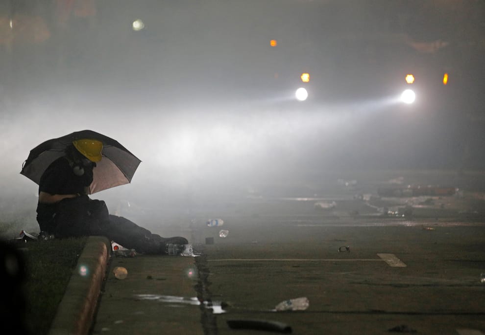 在美國威斯康辛州的基諾沙(Kenosha),一名示威者躲在雨傘下,遮住警車頭燈的強光。最近,基諾沙爆發嚴重的暴力示威,民眾紛紛走上街頭,抗議周日(23)白人警察朝黑人男子布雷克(Jacob Blake)連開數槍一案。