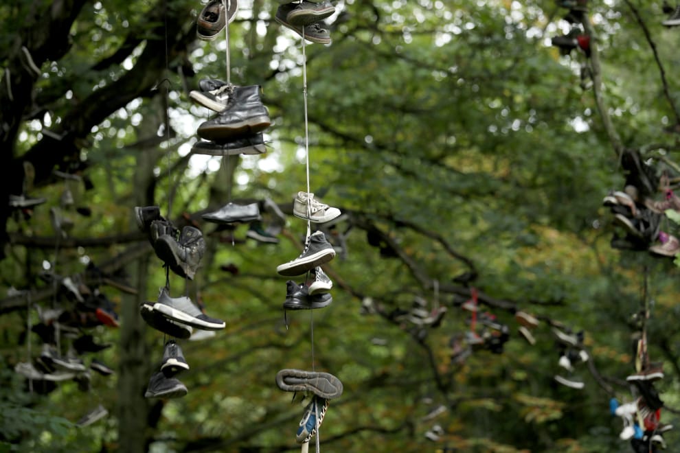 在英國紐卡斯爾鎮的希頓公園(Heaton Park),一棵蘇格蘭林地信托基金會(The Woodland Trust)選出的 2020年度樹木上掛滿鞋子。按照當地慣例,學生們在獲悉考試成績後,會將鞋子丟上樹。