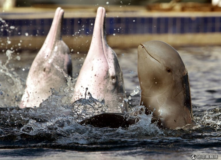 - 大西洋駝海豚(Sousa teuszi):大多出沒在西非海岸一帶,為國際自然保護聯盟(IUCN)定義的極危(Critically Endangered)物種。