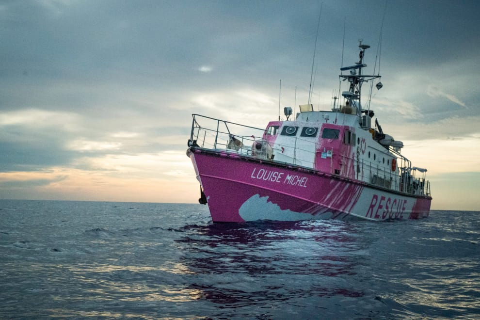 在地中海上,英國知名藝術家班克斯(Banksy)花費重金,將路易絲·米歇爾號(Louise Michel)改裝成難民搜救船,援救地中海上的難民們。