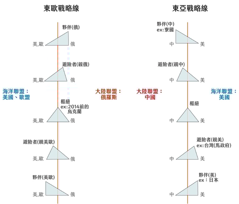 中小國想穩居樞紐或避險角色並不容易,烏克蘭顯然是前車之鑑。在兩大強權擠壓下,執政者試圖站穩「樞紐」位置,卻因為一系列錯誤操作,最終國家走上分裂動盪的命運。