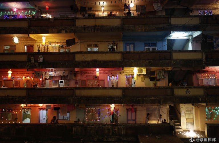 居民正在慶祝他們的大節日「光明節」(Diwali),家家戶戶門前都掛上了燈籠和燈光