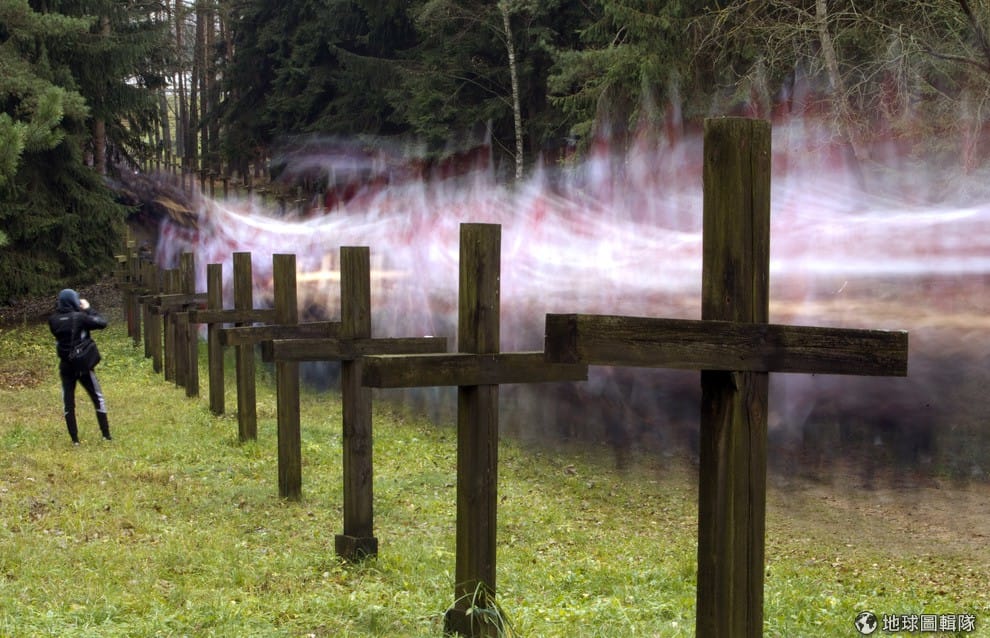 民眾走過十字架之間,當地正在舉辦受史達林政治迫害者的追悼會。約有60萬到150萬人在史達林執政期間受壓迫不幸死亡