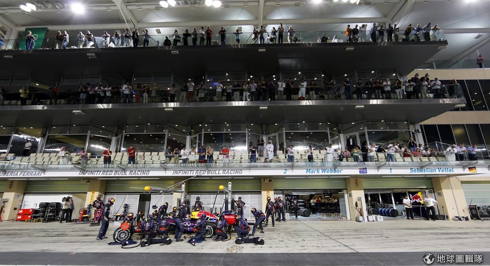 一級方程式賽車手偉伯(Mark Webber)正開進維修站中