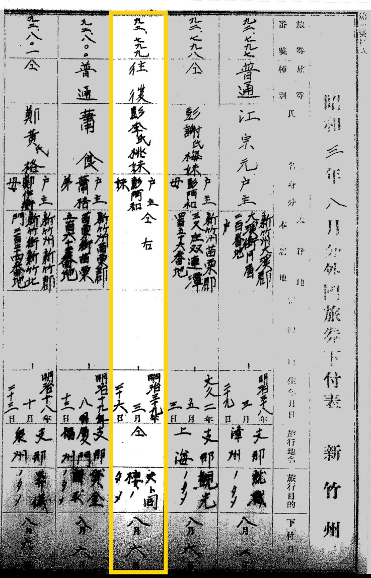 1897年至 1907年凡是由臺灣出境,無論日本人、韓國人、臺灣華僑、臺灣籍民,皆須申請「旅券」。