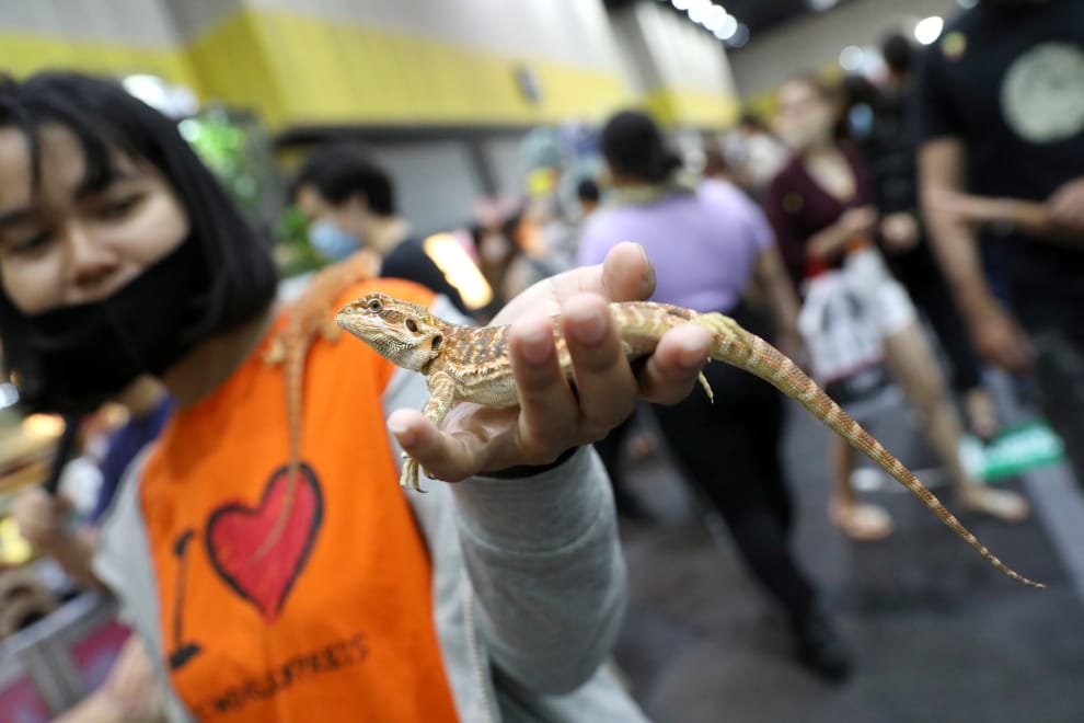 在曼谷舉行的寵物博覽會上,民眾紛紛帶自己的寵物出門亮相。