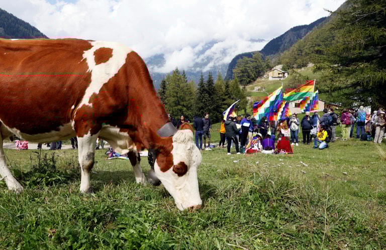 在瑞士南部小鎮特里安(Trient),環保人士們齊聚一堂,呼籲大眾重視氣候變遷,一起守護岌岌可危的特里安冰河。