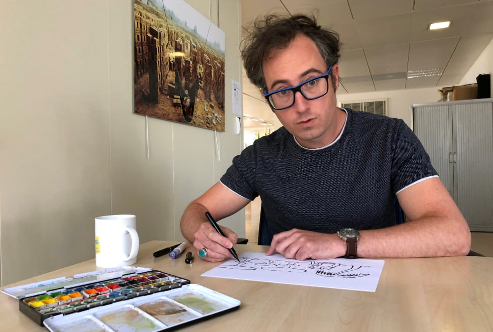 在巴黎,《查理周刊》(Charlie Hebdo)漫畫家朱恩(Pierrick Juin)正在接受路透社的專訪,他提到在《查理周刊》遭到恐怖攻擊後,他傾向不告訴別人自己在哪裡工作,「你不知道別人會怎麼想」。