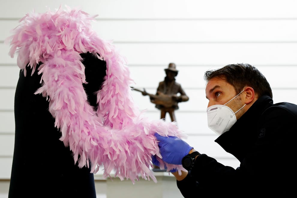 在位於西北部的默西賽德郡(Merseyside),歐米茄拍賣行(Omega Auctions)的拍賣官費爾威瑟(Paul Fairweather)正在整理粉色羽毛,這段粉色羽毛曾被美國著名吉他手吉米·亨德里克斯(Jimi Hendrix)穿戴過,它也準備登上拍賣場賣個好價錢。