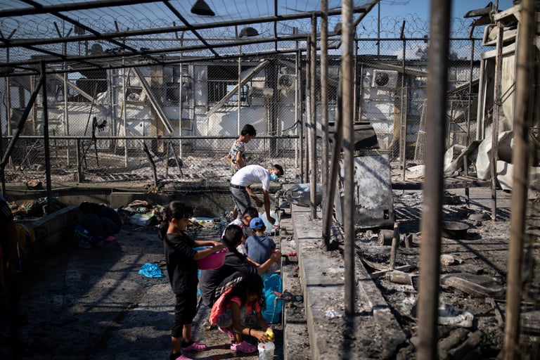 周三(9)清晨,希臘列斯伏斯島(Lesbos)上收容 1萬2,000名難民的莫里亞(Moria)難民營傳出失火,在強風的助長之下,火勢迅速蔓延,最終幾乎燒毀整片營地,導致大批難民必須摸黑逃難。