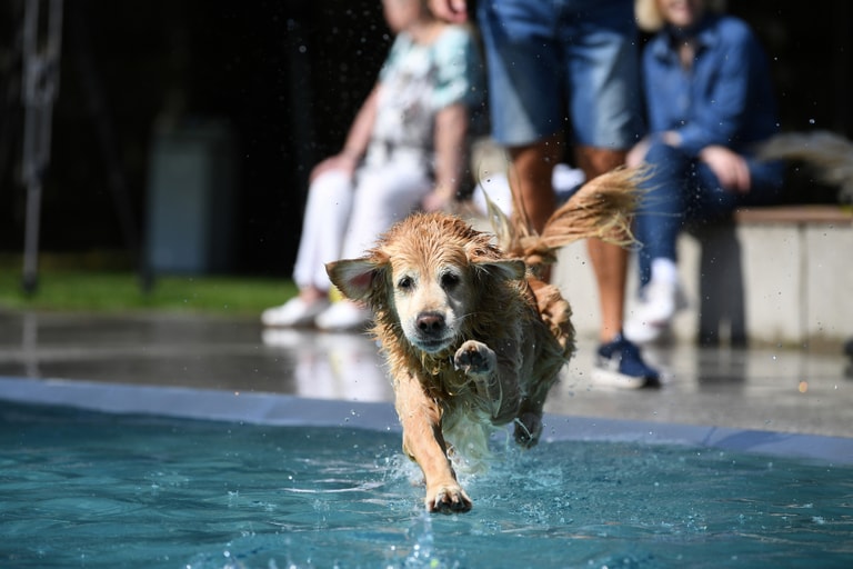 在狗狗游泳日這一天,慕尼黑的露天泳池特別開放飼主帶狗狗前來玩水消暑。