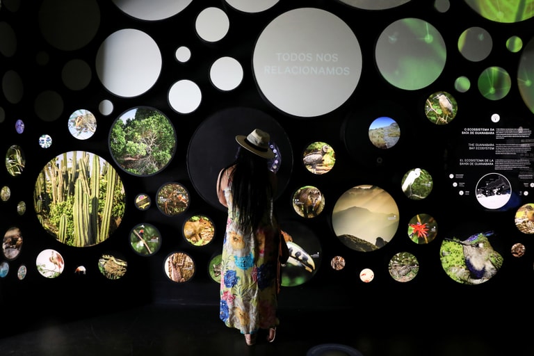 在里約熱內盧的「明天博物館」(Museum of Tomorrow)內,一名女子在疫情期間到場參觀。