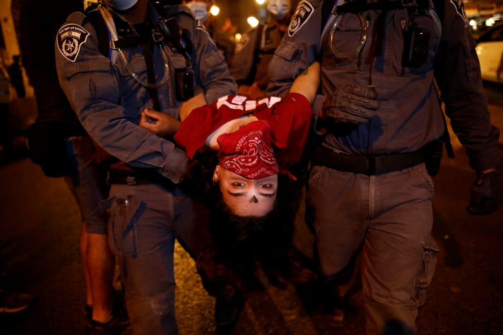 在耶路撒冷、以色列總理納坦雅虎(Benjamin Netanyahu)住處附近,民眾不斷對國內貪汙、因COVID-19(武漢肺炎)而萎靡不振的經濟發起示威。
