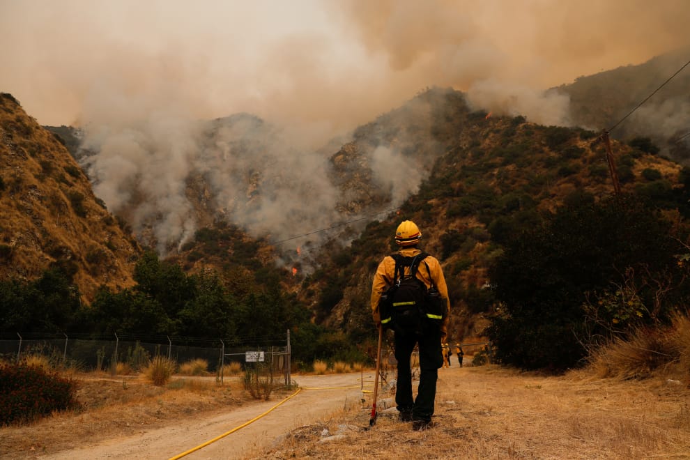 在美國加州的阿卡迪亞市(Arcadia),山貓野火(Bobcat Fire)的火勢不斷惡化,使得當局下令要求居民撤離。在一條小徑上,一名消防員獨自望著眼前冒出陣陣濃煙的山頭。