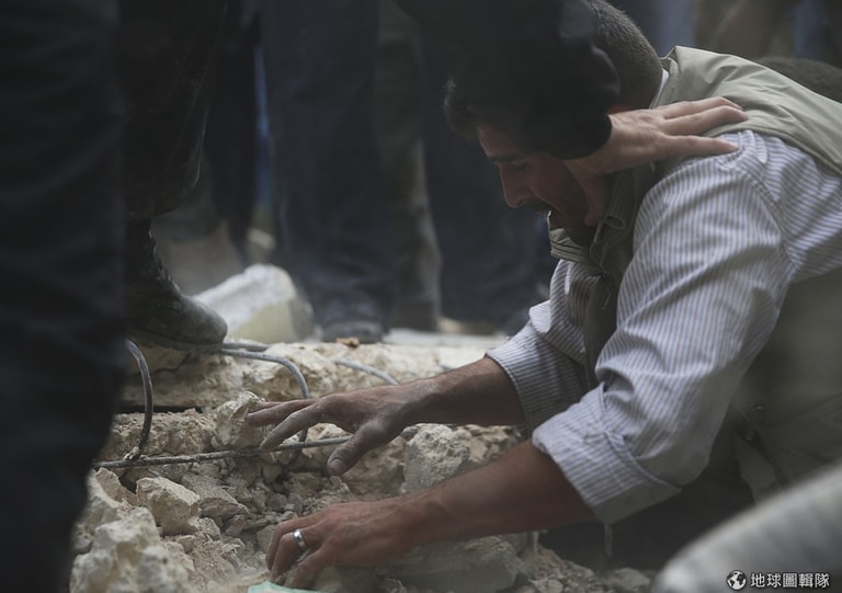 一為父親正在石推中想找出自己的女兒們。根據當地人表示釀成這場災難的就是敘利亞現任總統阿薩德,他下令攻擊大馬士革近郊。