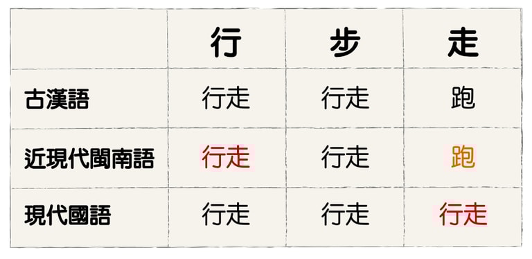 不過閩南語的「走」依然很復古!鮮明保留了「疾行、奔跑」的金文本意,例如「好膽莫走」(Hó-tánn mài tsáu)。