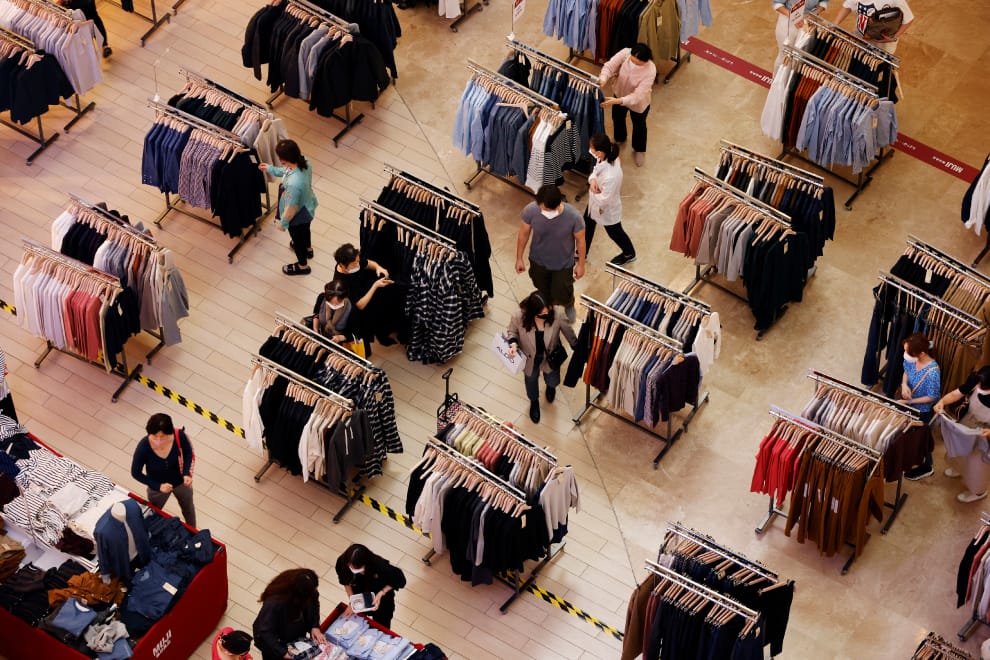 在南韓首都首爾,數名顧客正在一間大型購物商場的服飾區購物。