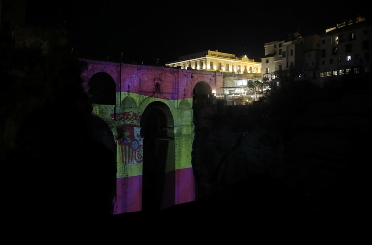 在 9月27日「世界旅遊日」(World Tourism Day)這一天,安達盧西亞自治區馬拉加省的山城隆達(Ronda),特地將各國國旗投影在當地著名地標新橋上宣傳觀光。
