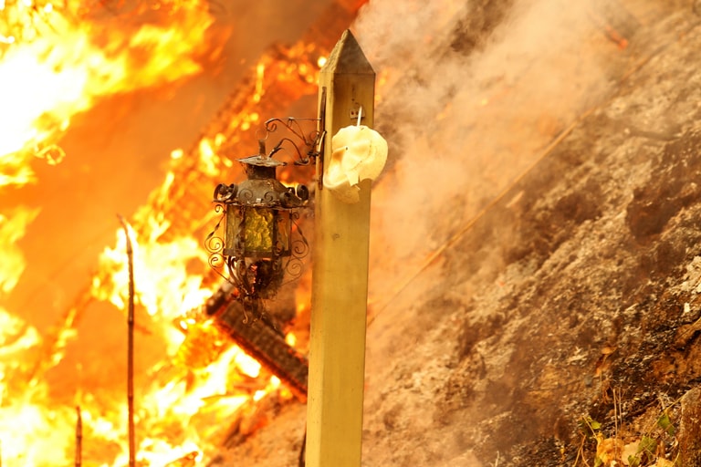在加州酒鄉納帕縣的卡利斯托加(Calistoga),被稱為「玻璃大火」(Glass Fire)的野火將當地一棟棟房屋吞噬。
