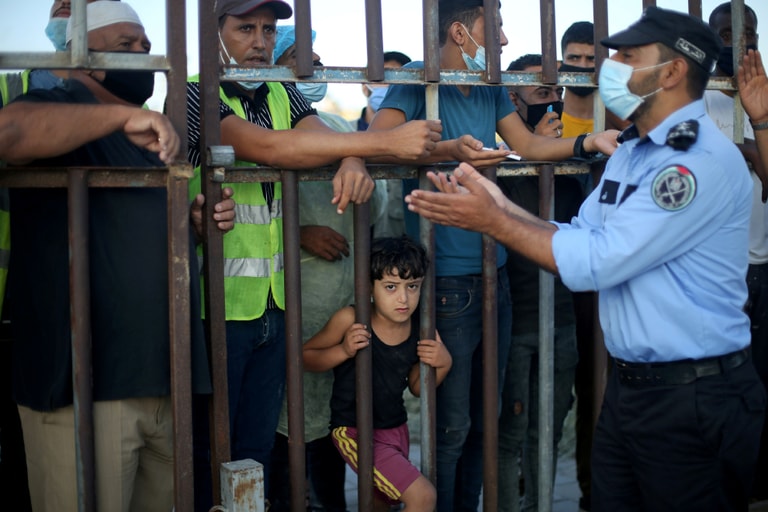 在加薩走廊前往埃及必經的拉法通道(The Rafah crossing),民眾攜家帶眷趁著疫情開放的空檔準備離開。