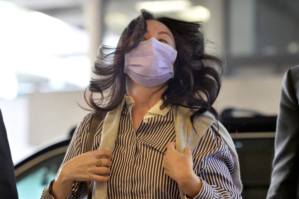 在英屬哥倫比亞省的第一大城溫哥華,中國科技公司華為財務長孟晚舟戴著「台灣製造」的口罩出庭應訊,要求中止加拿大將她引渡到美國的程序。